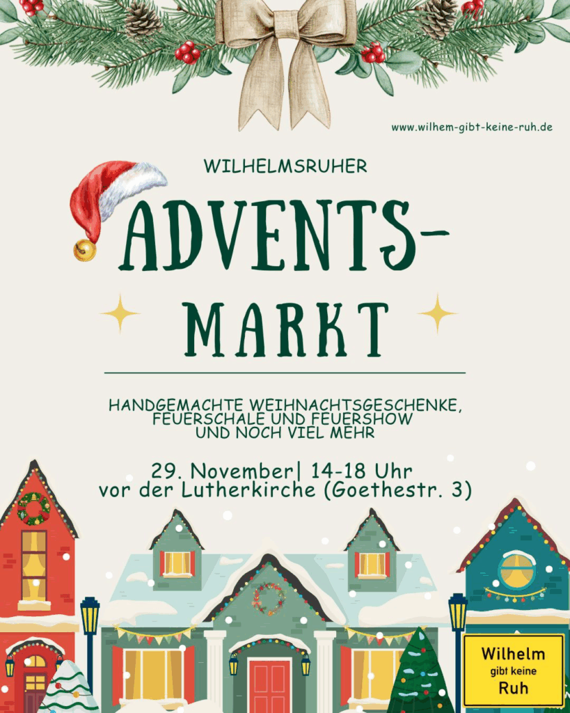 Am 29. November 2025 ist es wieder so weit: Mit unserem zweiten Wilhelmsruher Adventsmarkt von 14 bis 18 Uhr starten wir zusammen in die Vorweihnachtszeit. Vor der Lutherkirche in der Goethestraße 3 entsteht ein kleiner Markt mit liebevollen Ständen – genau das, was unser Kiez in dieser Zeit braucht.